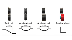 | Rievu veidi | Tank roll, Arc bead (divos izmēros), izliekuma rievas |