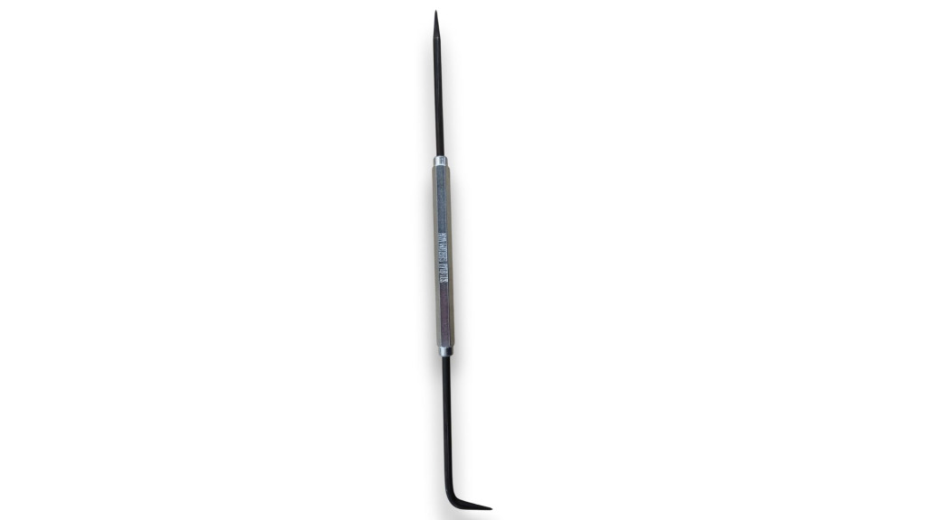 Izliekts metāla atzīmētājs paredzēts precīzai līniju iezīmēšanai uz metāla loksnēm pirms griešanas vai locīšanas.