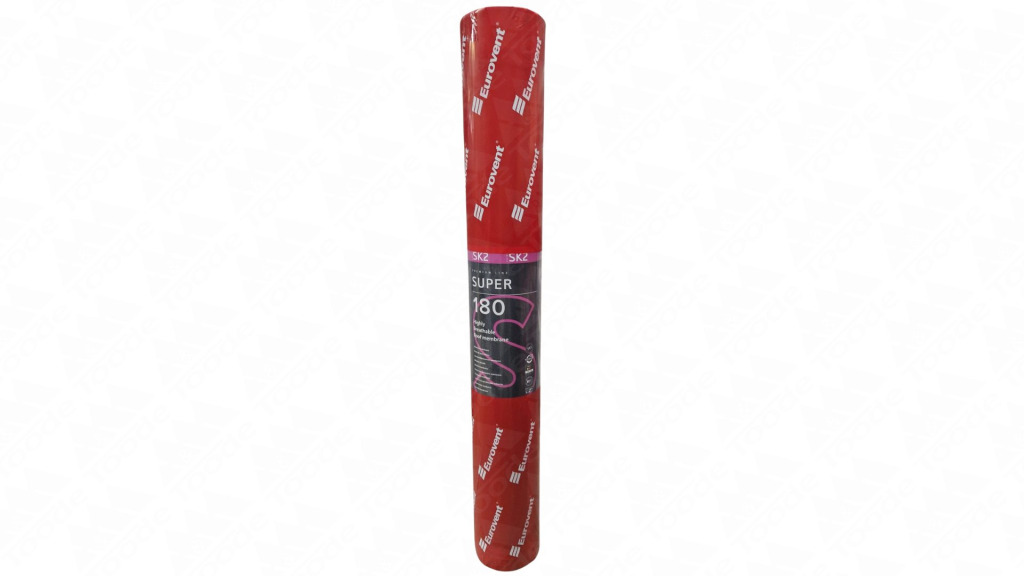 Eurovent Super 180 SK2 ir trīsslāņu augstas difūzijas jumta membrāna ar divām integrētām līmlentēm (SYSTEM SK2), paredzēta slīpo jumtu konstrukcijām. Membrāna nodrošina efektīvu aizsardzību pret ūdeni un vēju, vienlaikus ļaujot konstrukcijai brīvi izvadīt mitrumu no siltumizolācijas slāņa.