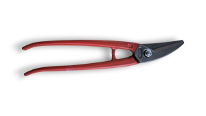 Šīs šķēres paredzētas izliektu griezumu veidošanai pa kreisi metāla loksnēs. Izlieктā asmens forma ļauj precīzi apstrādāt sarežģītas formas skārda elementus, kas nepieciešami jumta un skārdnieku montāžas darbos.