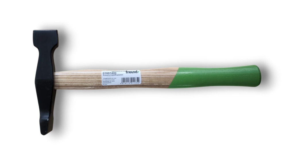 Skārdnieku āmurs ar izvērptu formu paredzēts metāla lokšņu formēšanai, malu apstrādei un falcu veidošanai skārda darbos.