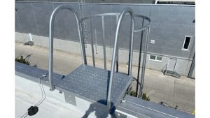 Platforma tiek savienota ar kāpņu pusloku un nodrošina drošu stāvēšanas vietu apkopes vai montāžas darbu laikā.