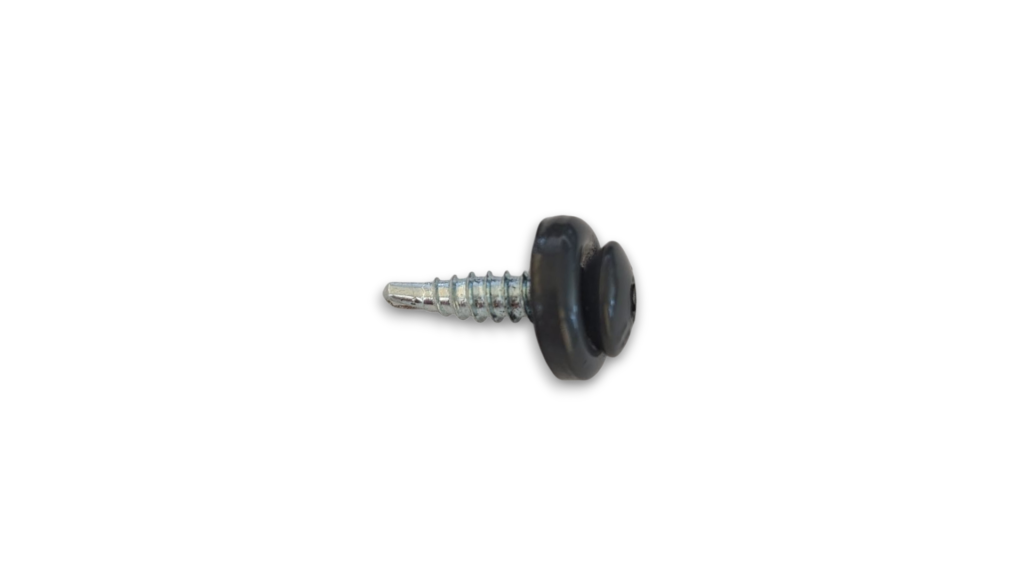 GTF P 4,8 × 20 mm paredzētas profilētu metāla jumta lokšņu savstarpējai savienošanai — pārklājuma vietās, kur skrūvei nav nepieciešams sasniegt koka latojumu. Apaļa galva ar gumijas blīvi cieši pieguļ loksnes virsmai un nodrošina ūdensizturīgu savienojumu.