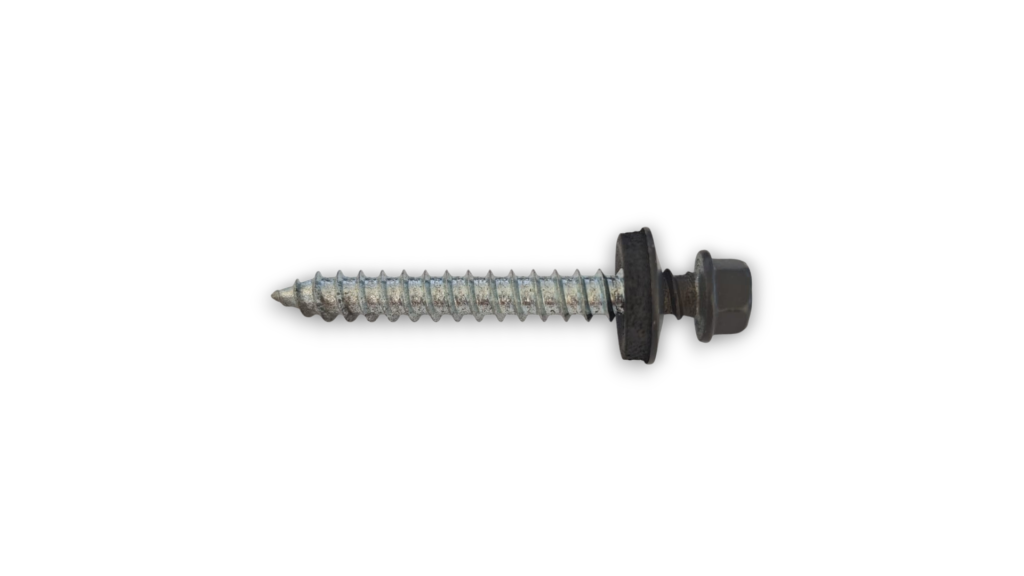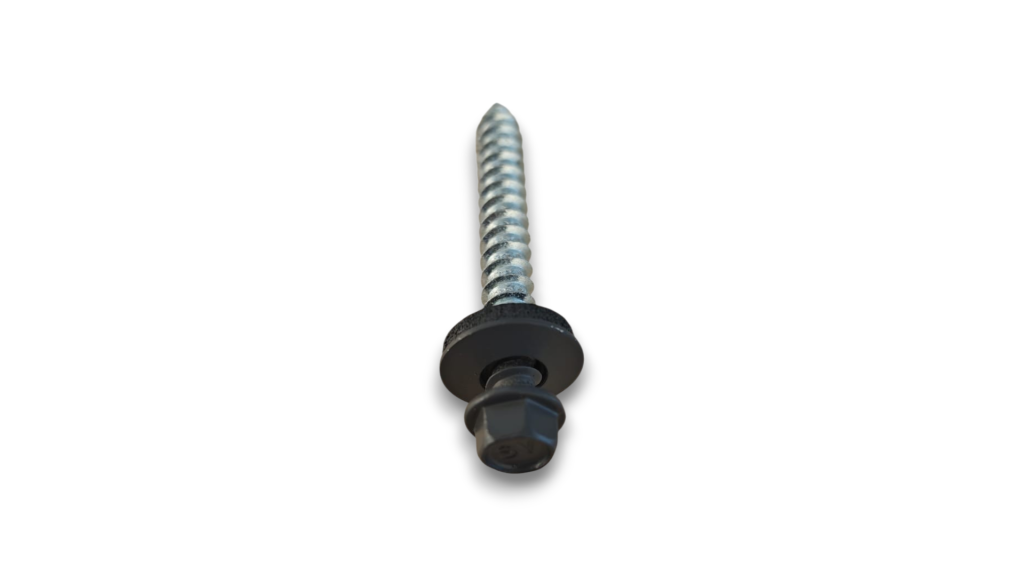 6,5 mm diametrs un seškantu galva nodrošina augstu izvilkšanas pretestību slodzes apstākļos. EPDM blīve hermētiski noslēdz skrūves caurumu un novērš mitruma iekļūšanu. Skrūves ir pašurbjošas — priekšurbšana nav nepieciešama. Ieteicamais instruments — akumulatora skrūvgriezis ar 3/8″ seškantu uzgali.
