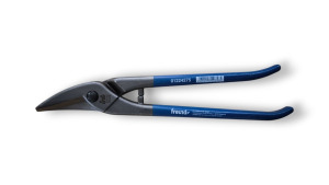 Profesionālās FREUND kombinētās šķēres paredzētas metāla lokšņu taisnu un liela rādiusa griezumu veidošanai skārdnieku un jumiķu darbos. 275 mm garums nodrošina labu griešanas spēku un kontroli. Asmeņi rūdīti līdz HRC 59 — piemēroti vara, cinka, alumīnija un nerūsējošā tērauda griešanai, nelokot loksni.